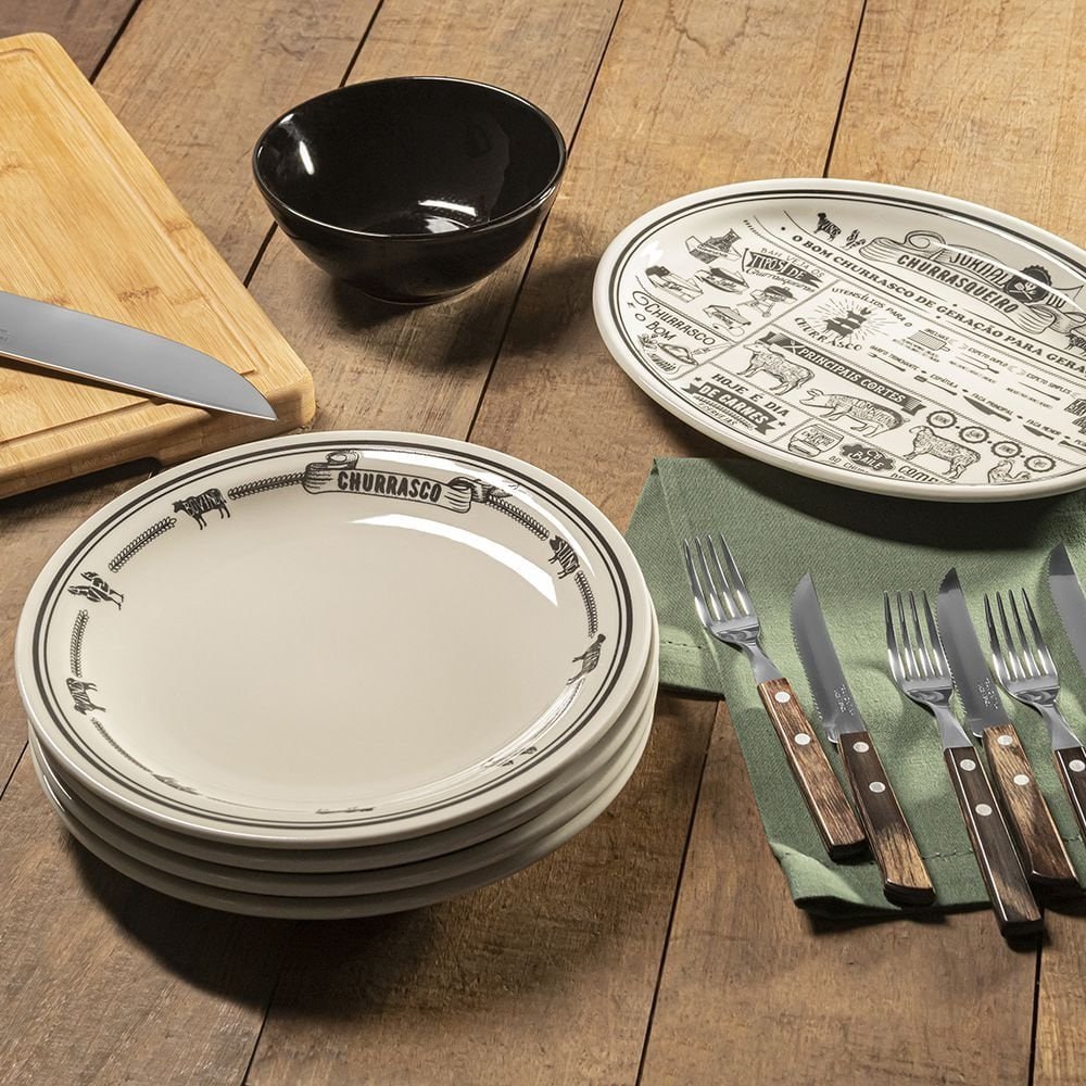 1 Conjunto de Churrasco 6 Peças Oxford Daily Jornal Do Churrasqueiro Branco/Preto