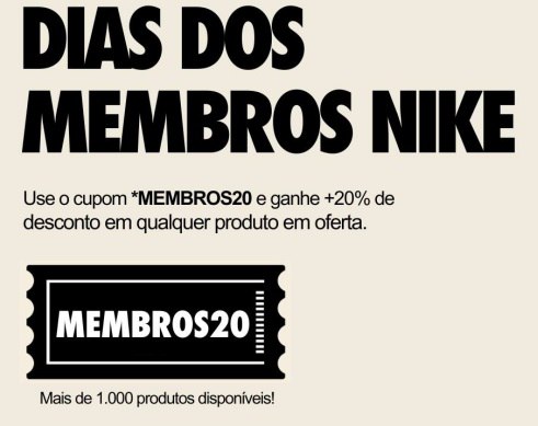 20% de desconto EXTRA em mais de 1.000 itens NIKE
