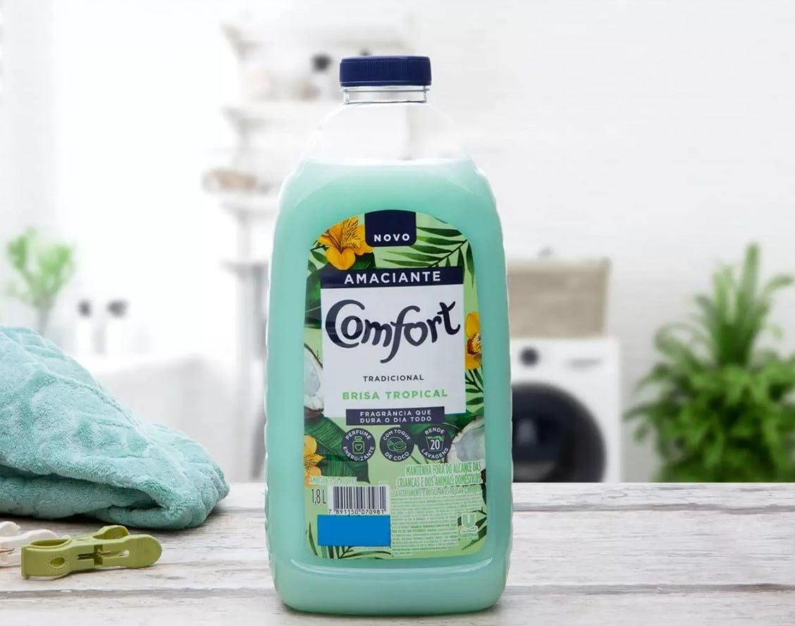 Amaciante de Roupa Diluído Tradicional Brisa Tropical com Toque de Coco Comfort Frasco 1, 8l, Comfort