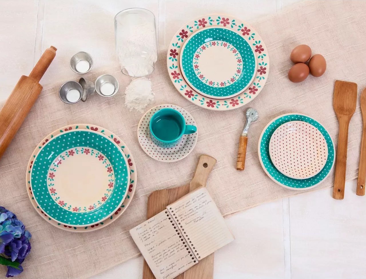 Aparelho de jantar e chá em cerâmica, são 20 peças 💙