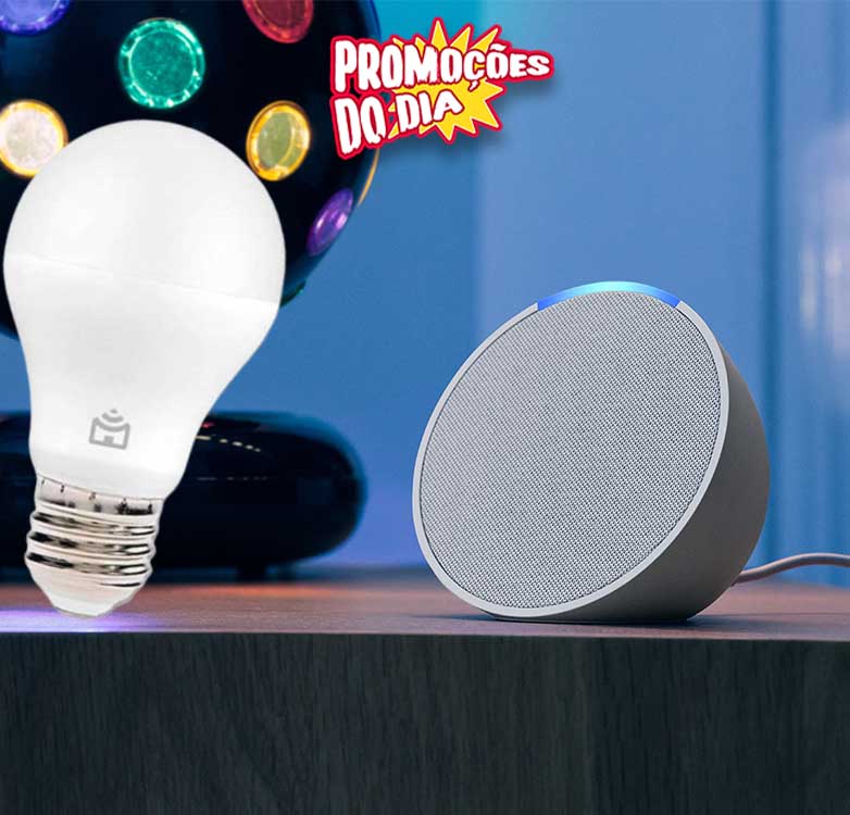Apresentamos Echo Pop | Smart speaker compacto com som envolvente e Alexa | Cor Branca + Lâmpada Positivo