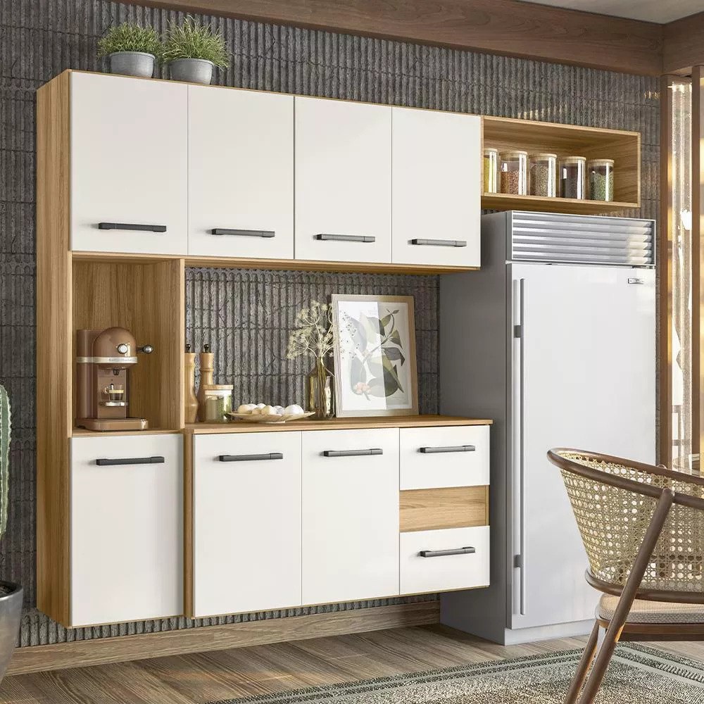 Armario Cozinha 7 Portas E 2 Gavetas Juliete Cor Freijó/off White