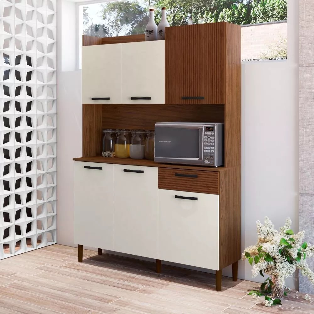 Armário De Cozinha Completa Genova Nogueira / Off White