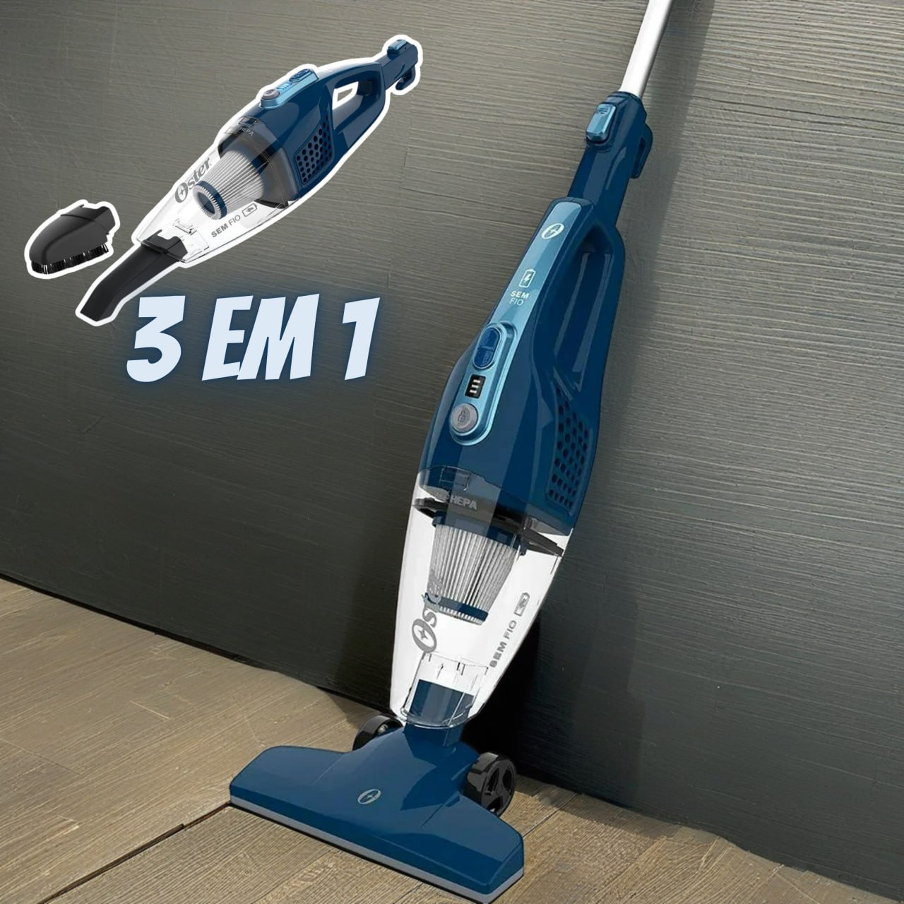 Aspirador de Pó Vertical Oster Sem Fio 3 em 1, Bateria, Azul, 90W, OASP630