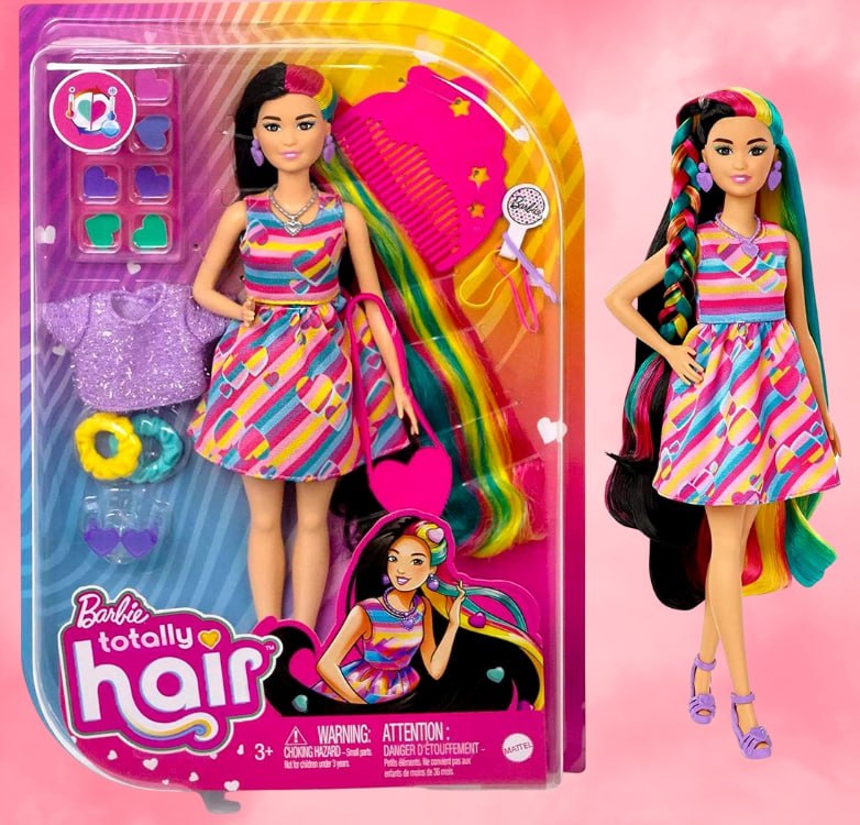 Barbie Boneca Totally Hair Vestido Listrado Colorido, HCM90, Multicor