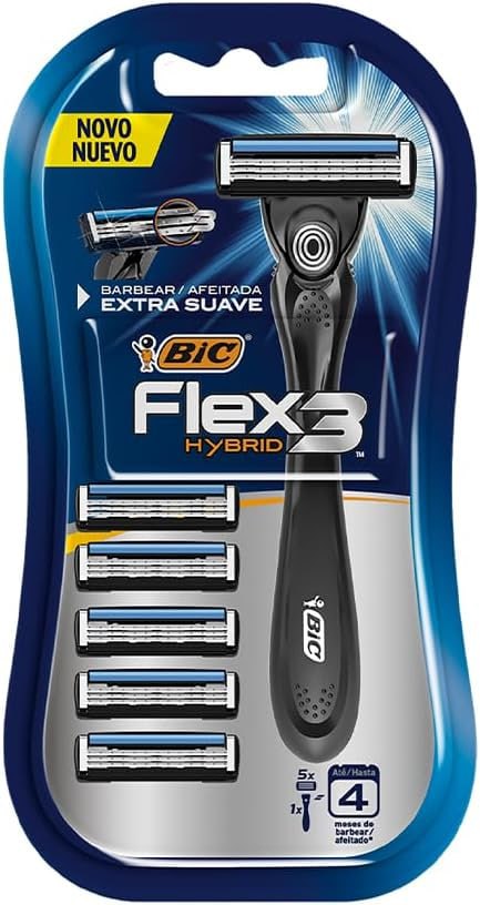 BIC Aparelho De Barbear Flex3 Hybrid 3 Lâminas Extra Suave + 5 Cargas 968722 1 Unidade Corpo Ergonômico