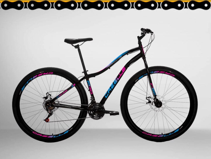 Bicicleta Aro 29 Colli Bike Cazelle Veneza 21 Marchas, Freio à Disco e Quadro 15,5″ – Preta/Rosa/Azul