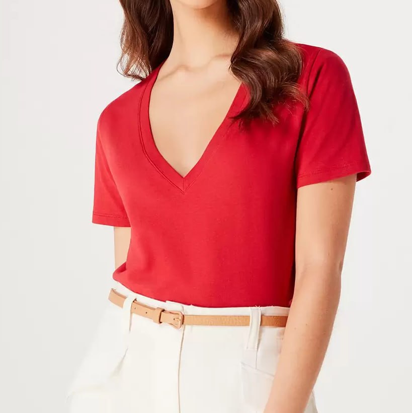 Blusa Básica Feminina Em Algodão Com Decote V – Hering