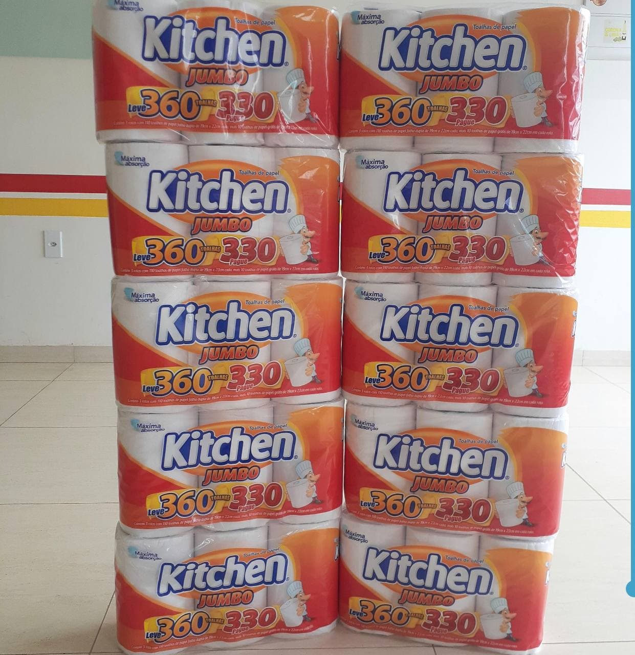 Papel Toalha Kitchen Jumbo Folha Dupla – Pack com 3 rolos de 110 unidades de 19×22 cm cada