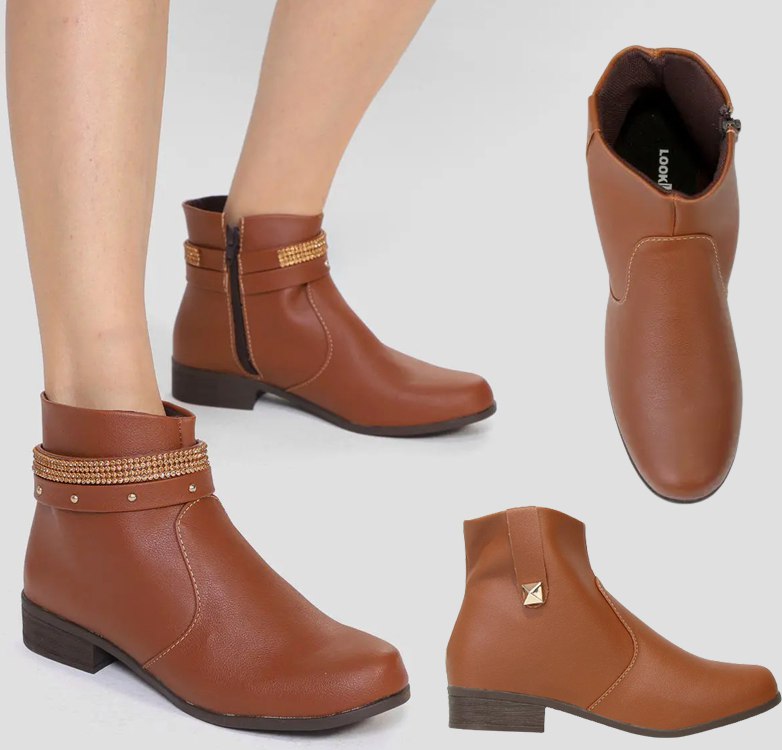 Bota Cano Curto Look Fashion Tira Tacha Feminina