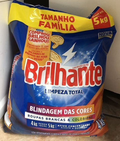 Brilhante Lava-Roupas em Pó Roupas Brancas e Coloridas Limpeza Total Pacote Tamanho Família 4 kg (Pacote de 1)