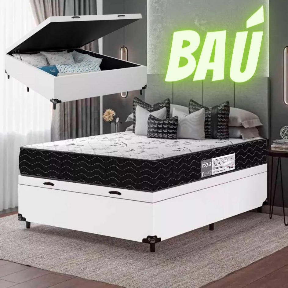 Cama Box Baú Casal + Colchão D33 One Face – Várias Cores