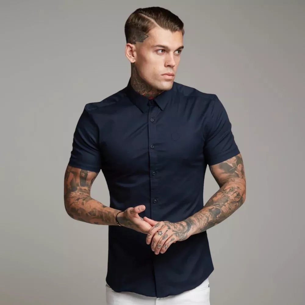 Camisa Social Lisa Masculina Manga Curta Slim Fit