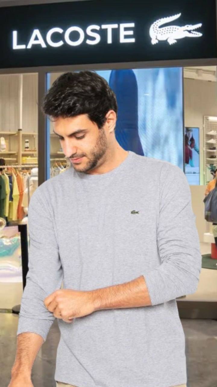 Camiseta Lacoste em Jérsei de Algodão Pima com Gola Redonda Masculina – Cinza