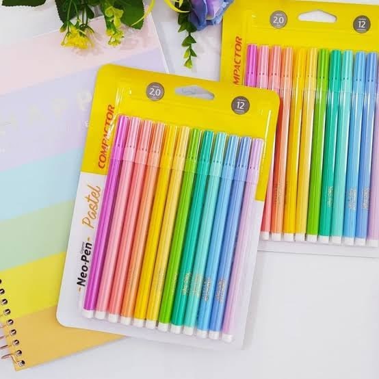 Caneta Hidrocor Compactor Neo Pen Gigante Estojo 012 Cores Pastel