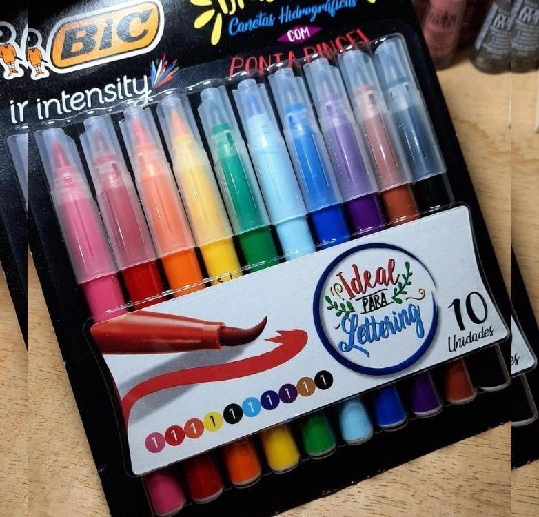 Caneta Hidrográfica BIC Intensity Brush Pens, Ponta Pincel, Traço Fino ou Grosso, pacote com 10 unidades