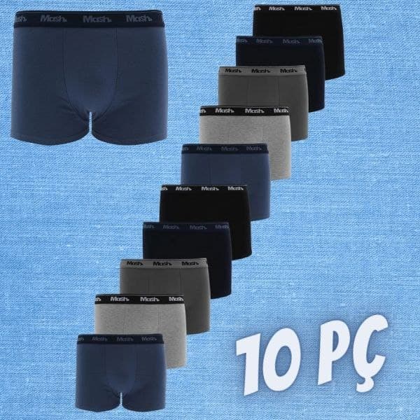Kit 10pçs Cueca MASH Boxer Básica Preto/Cinza/Azul