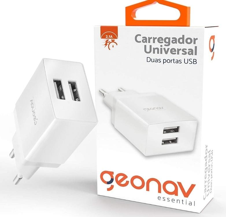 Carregador de Parede Universal 2.1A, 2 portas USB, Bivolt, Branco, ESACW2, Geonav