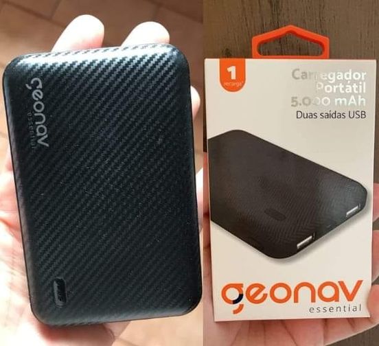 Carregador Portátil Universal 5.000mAh, 2 portas USB, Led Indicador de bateria, Preto, ES5KBK,Geonav