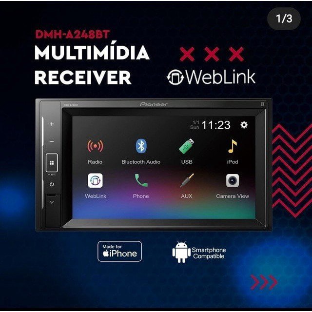 Central Multimídia Pioneer DMH-A248BT Bluetooth – Touch 6.2” USB Receiver 2 DIN Câmera de Ré
