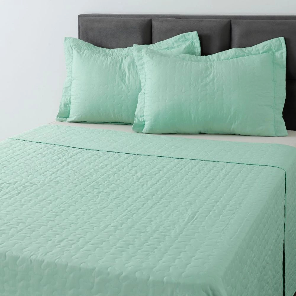 Colcha Casal Boutis Verde com 2 Portas Travesseiros – Casa e Conforto