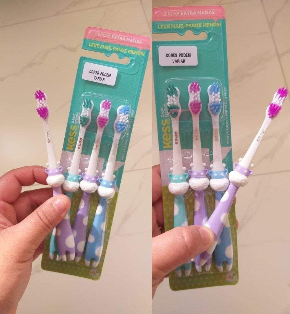 Combo Econômico Infantil com 3 Escovas Dentais, Kess, Multicor