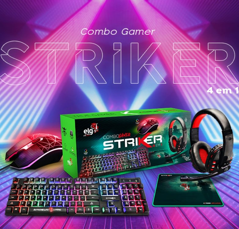 COMBO GAMER 4 EM 1 HEADSET CLEAR SOUND MOUSE 2400 DPI – CGSR41 – ELG, PRETO