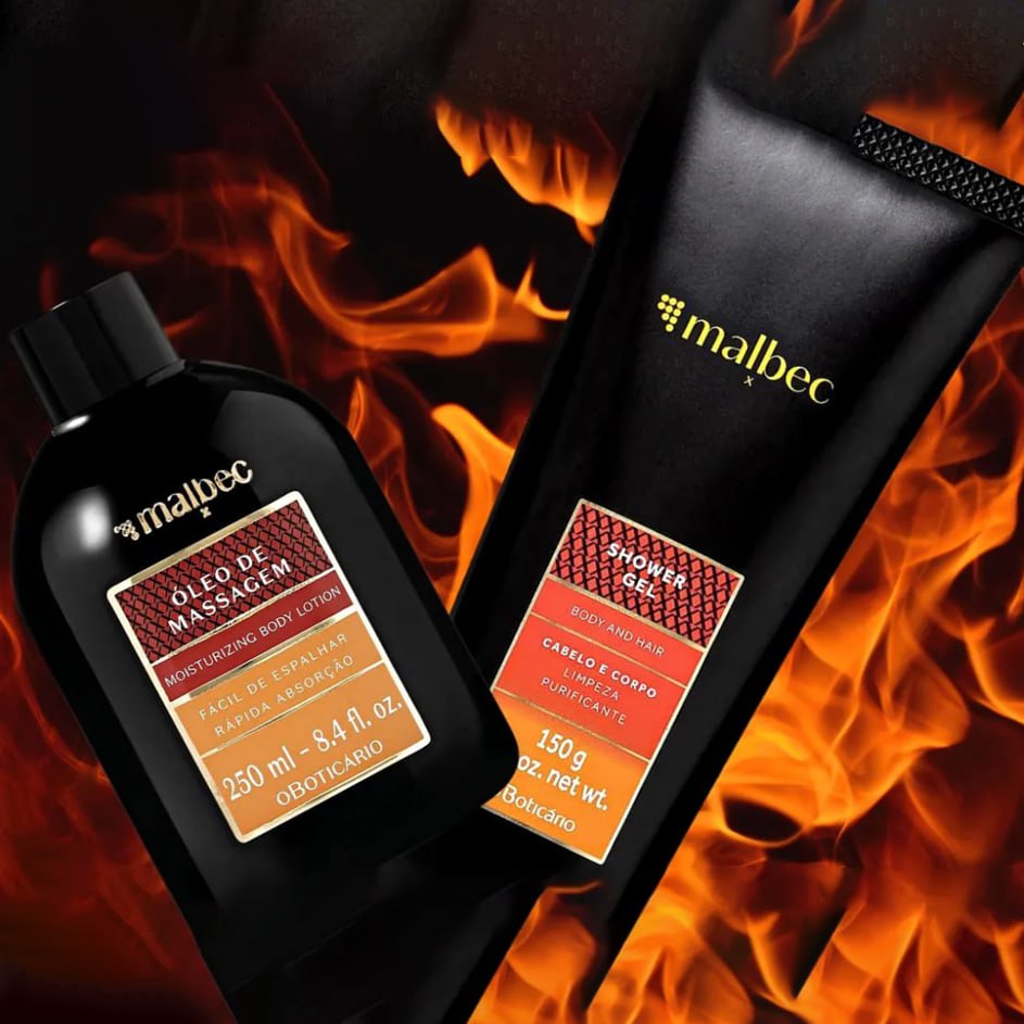 Combo Malbec X: Óleo de Massagem 200ml + Shower Gel Cabelo e Corpo 200g