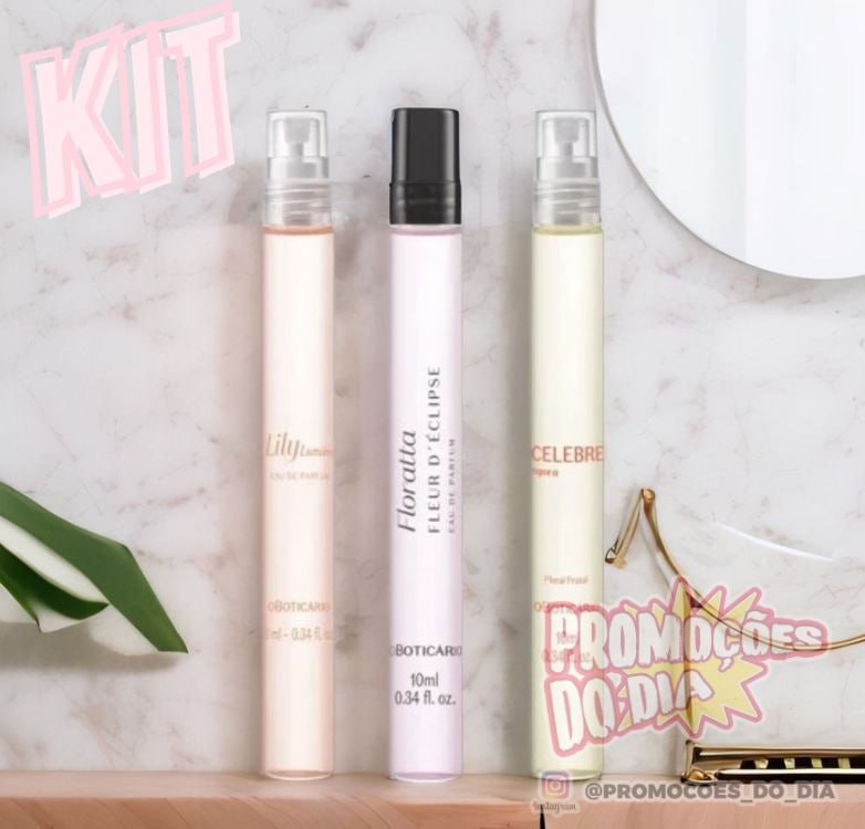 Combo Mini Perfumaria: Lily Lumiére 10ml + Floratta Fleur D’Eclipse 10ml + Celebre Agora Feminino 10ml