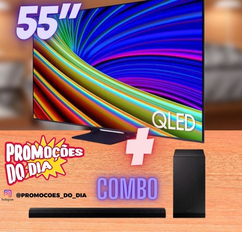 Combo Samsung Smart TV 55 polegadas QLED 4K Q65C 2023 Soundbar HW-A555/ZD