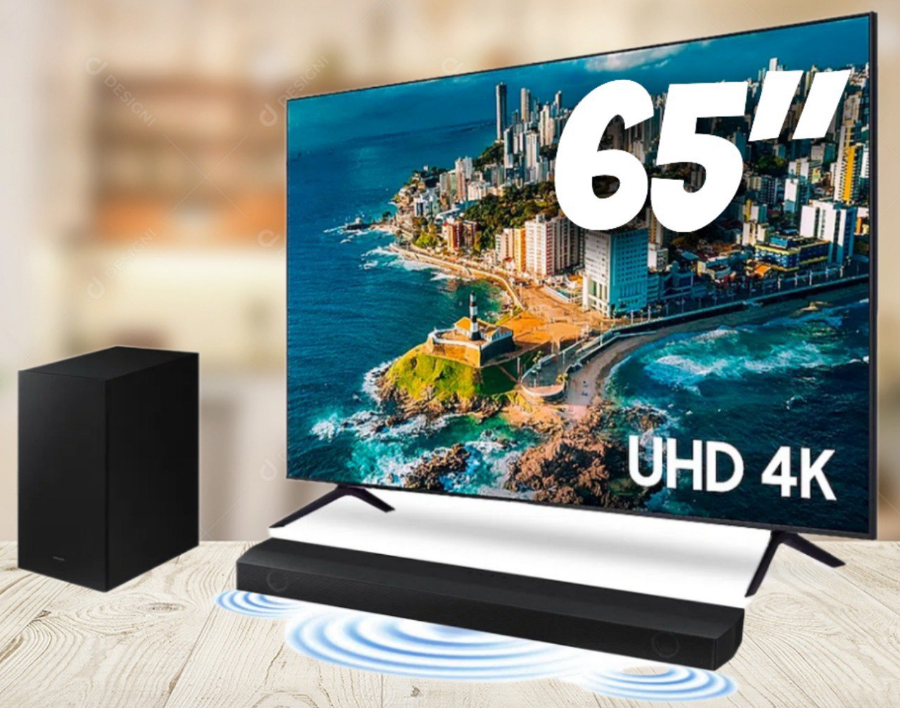 Combo Samsung Smart TV 65 polegadas UHD 4K 65CU7700 + Soundbar Samsung HW-B555/ZD
