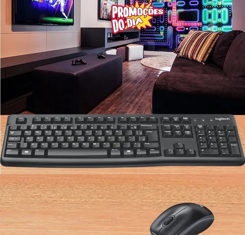 Combo Teclado e Mouse com fio USB Logitech MK120 com Design Confortável, Durável e Resistente à Respingos e Layout ABNT2