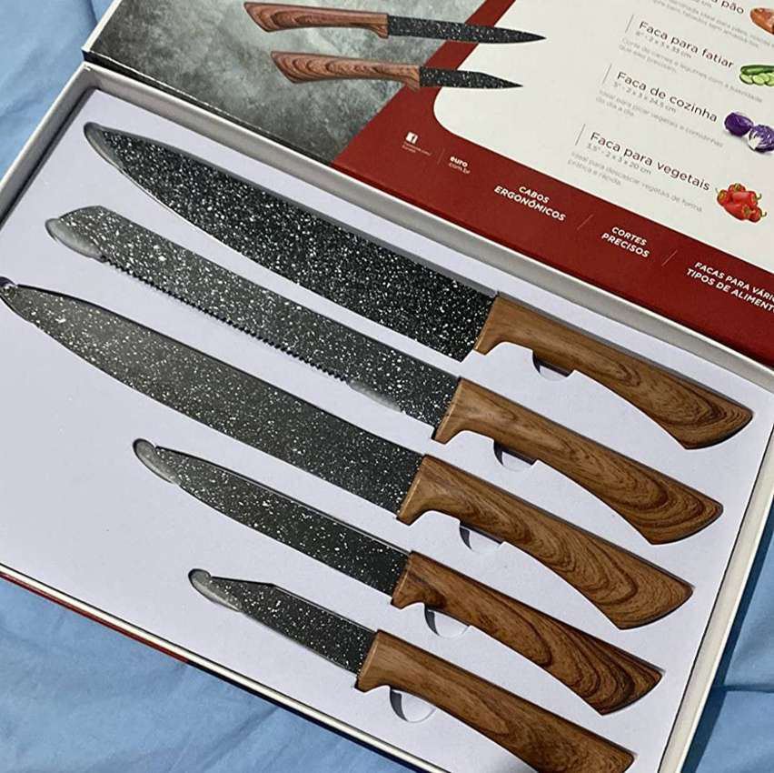 Conjunto de Facas 5 Peças Colorstone Wooden, FAC5494, Euro Home