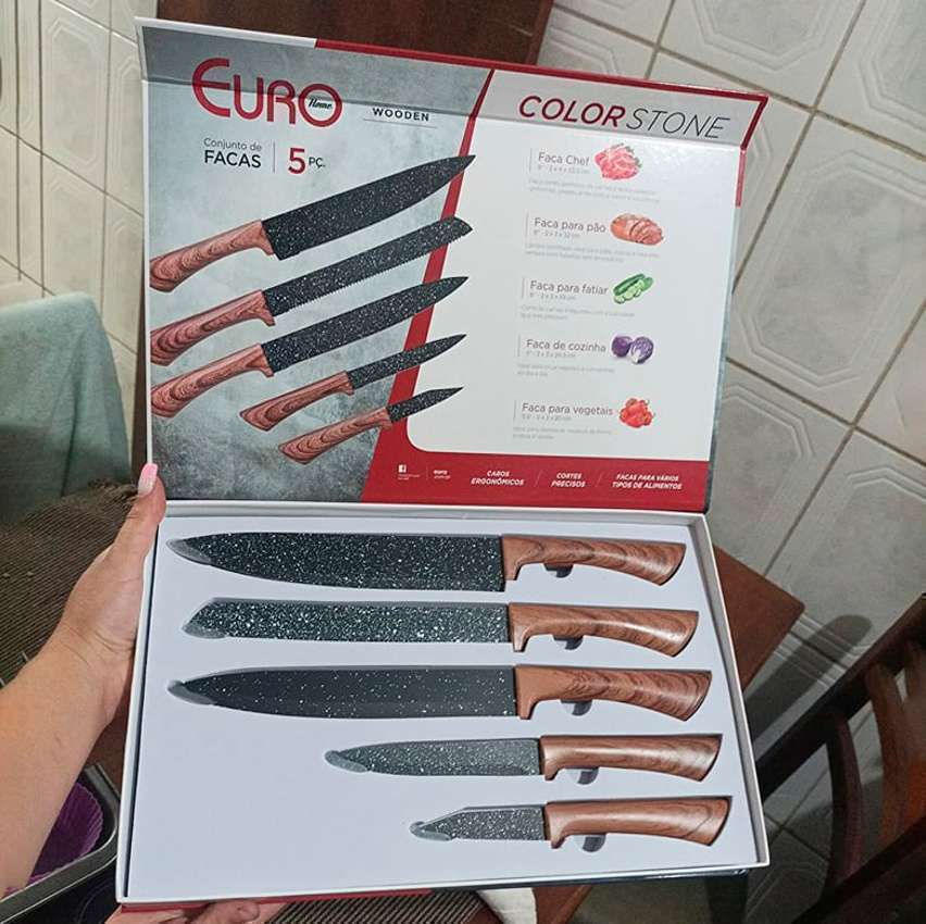 Conjunto de Facas 5 Peças Colorstone Wooden, FAC5494, Euro Home