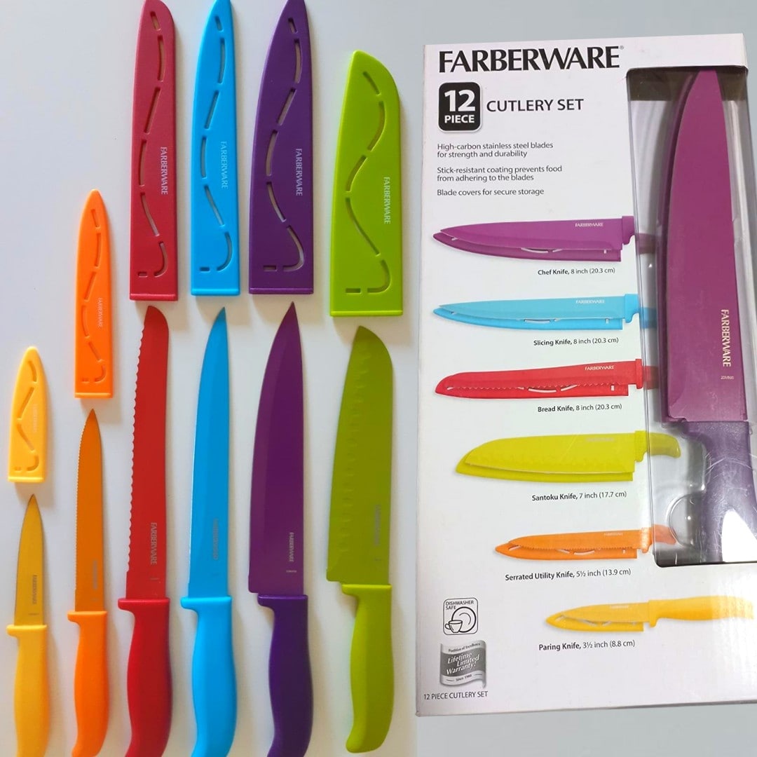 Conjunto de facas de talheres de resina antiaderente Farberware, 12 peças, multicolorido