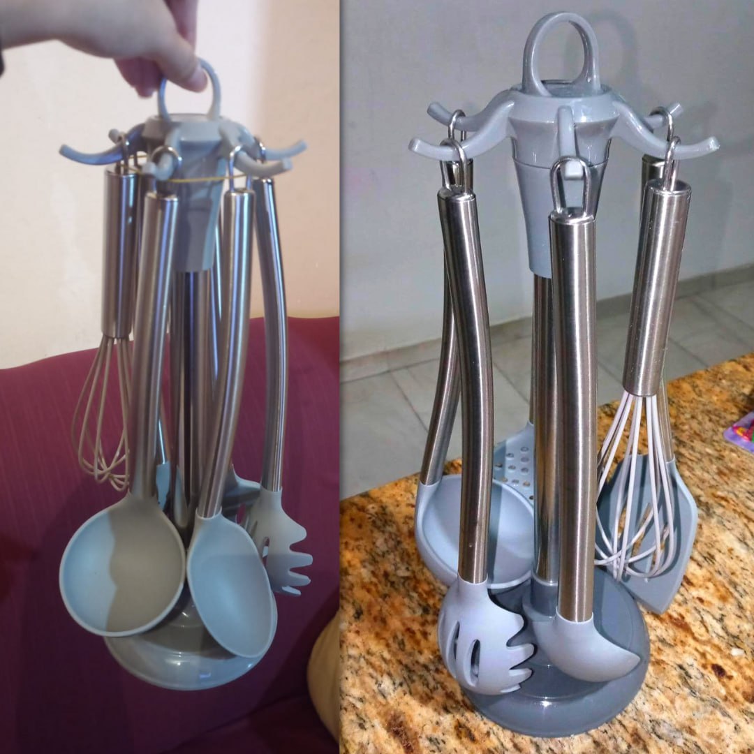 Conjunto de Gadgets de Silicone com Cabo Inox 7 Peças Euro Cinza