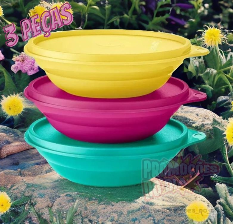 Conjunto de Tigelas de Plástico 3 Peças – Tupperware Pragela Colors