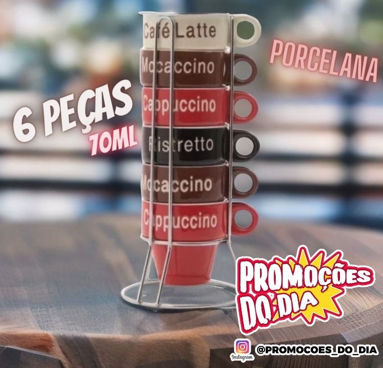 6 Xícaras para Café Porcelana com Suporte Names 70ml ☕️