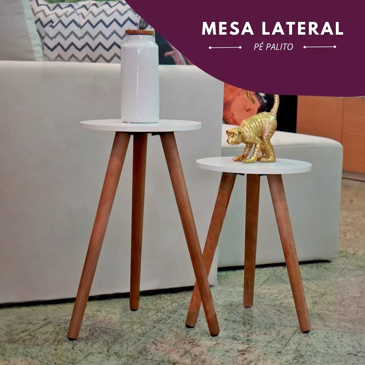 Conjunto Mesa Redonda Lateral De Canto Apoio Pe Palito Mdf