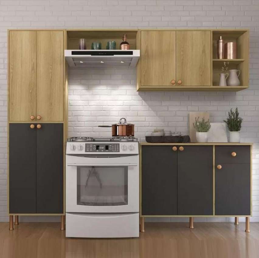 Cozinha Compacta Indekes Florença com Balcão – 9 Portas 1 Gaveta Castanho e Grafite