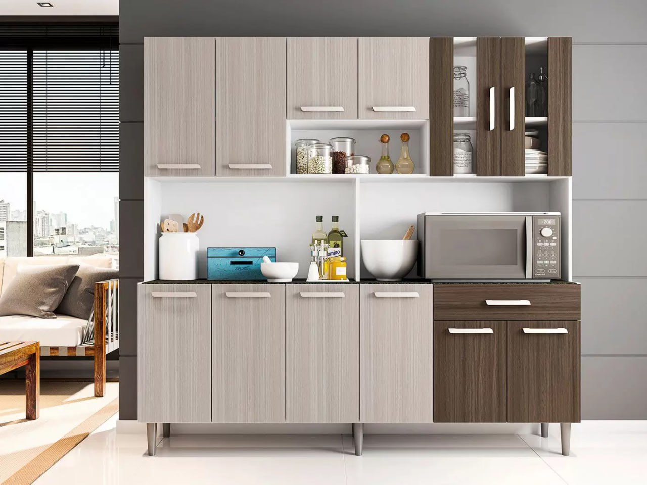 Cozinha Compacta Poliman Clara com Balcão Nicho para Micro-ondas 12 Portas 1 Gaveta