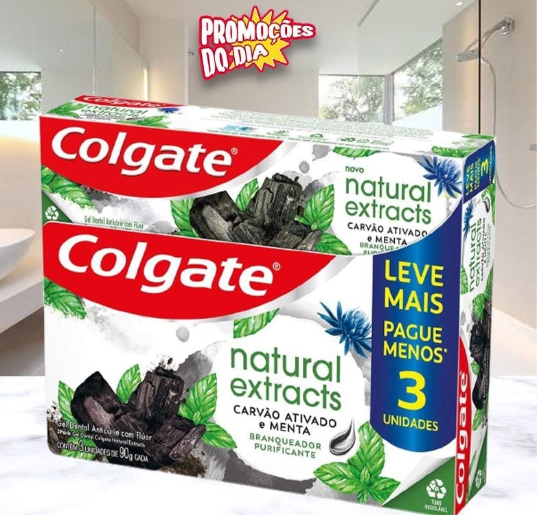 Creme Dental Colgate Natural Extracts Carvão Ativado e Menta 3 unid 90g