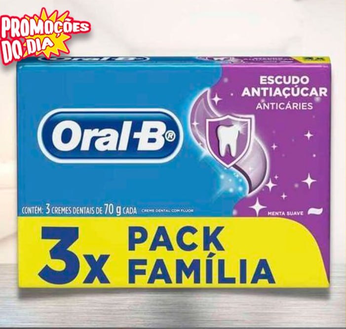 Creme Dental Oral-B Escudo Anti Açúcar Tradicional Leve 3 Pague 2 70g, Oral B