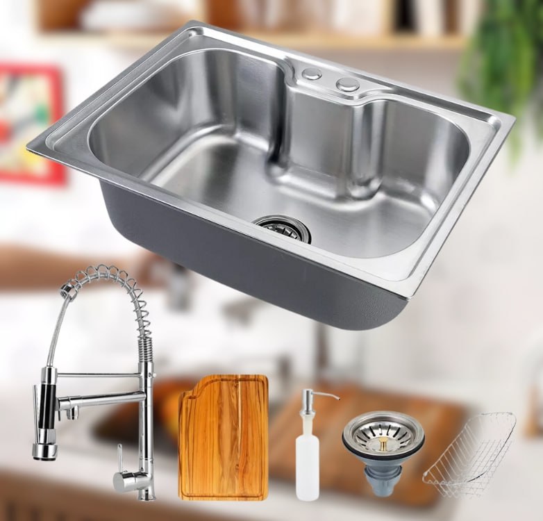 Cuba para Cozinha Gourmet Pia Aço Inox com Acessórios e Tábua de Corte Nawa 50 cm e Torneira Gourmet Munim Pingoo.casa