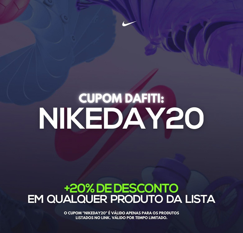 Cupom de 20% de desconto em produtos Nike