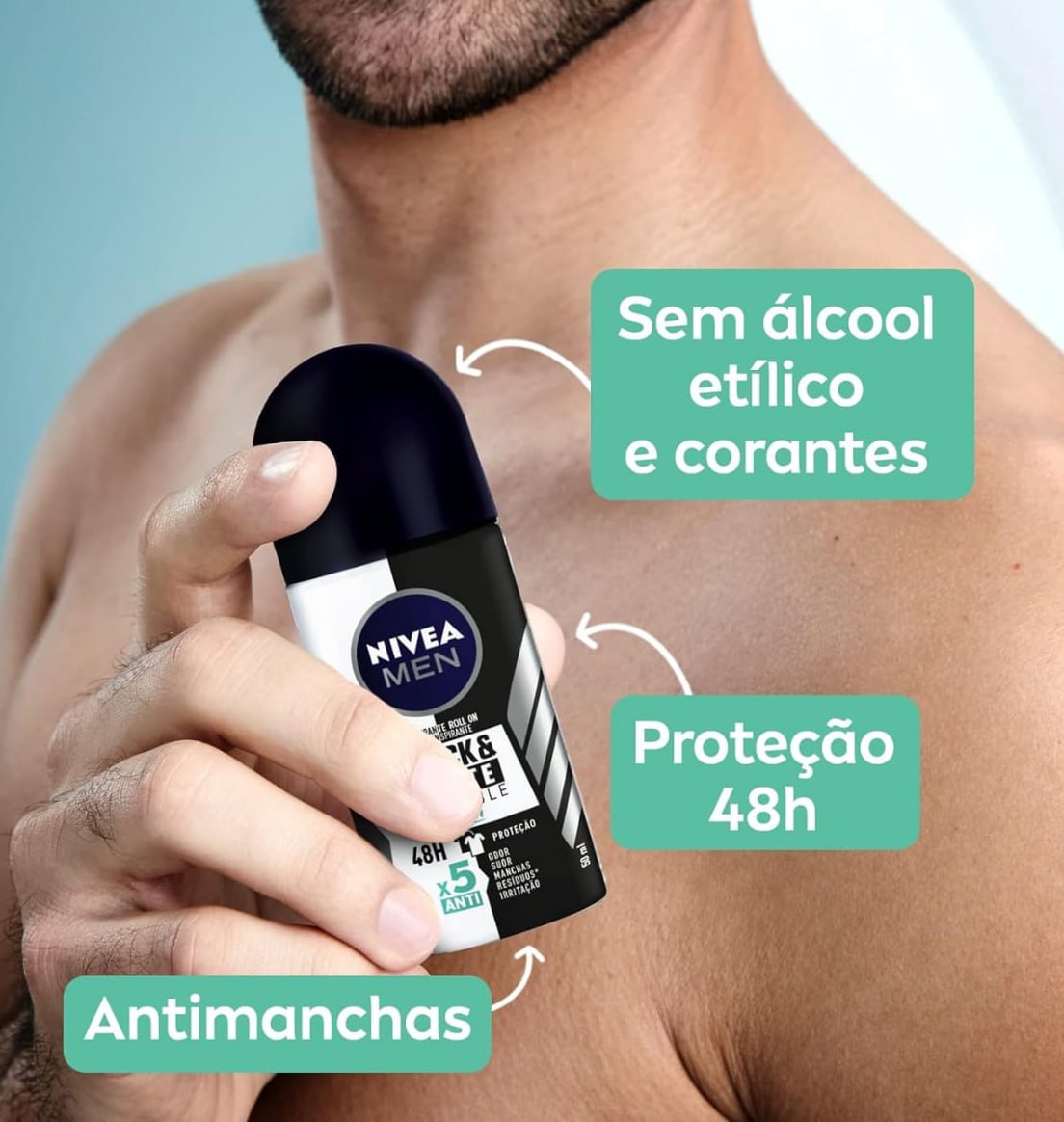 Desodorante Antitranspirante Roll On NIVEA Men Invisible for Black & White Fresh 50ml, Nivea, Branco