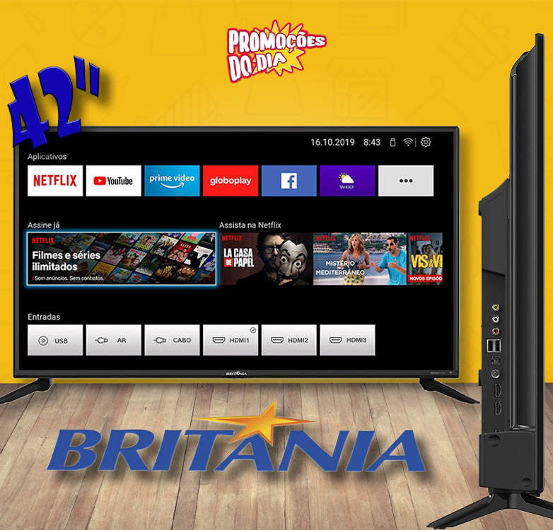 Smart TV LED, 42” Polegadas, BTV42G70N5CF, Com conexão Wi-Fi, 2 entradas HDMI, Processador Quad-Core, Britânia