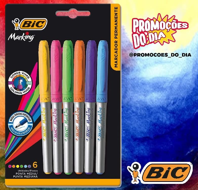 Pincel Marcador Permanente BIC Marking Color, Ponta Média, 6 Cores, 891633, 6 Unidades