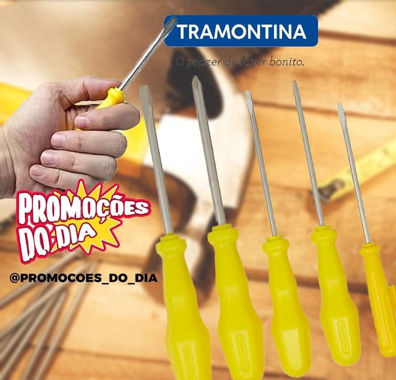 Tramontina 43408176, Jogo de Chaves de Fenda 5 Peças, Sendo 2 Ponta Chata 2 Ponta Cruzada 1 Clipe