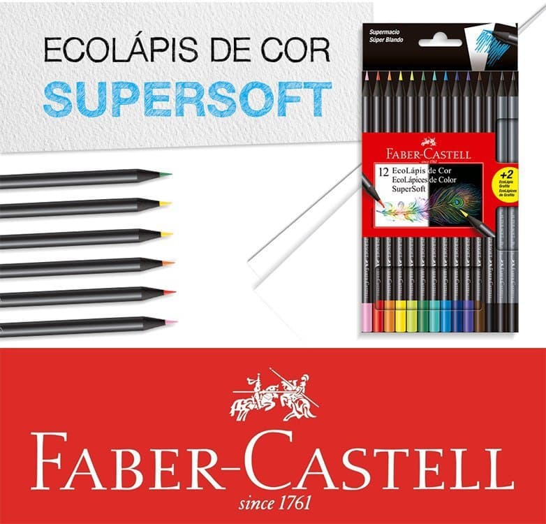 Lápis de Cor, Faber-Castell, EcoLápis Supersoft, 120712SOFT+2, 12 Cores + 2 Grafite